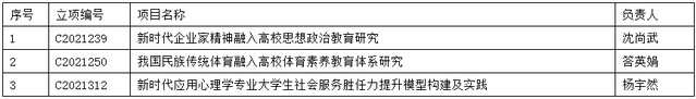 根据《上海市教育委员会关于公布2021年度上海市教育科学研究项目的通知》(沪教委科【2020】39号),我校3个项目成功获得上海市教育科学研究一般项目立项。具体名单如下: