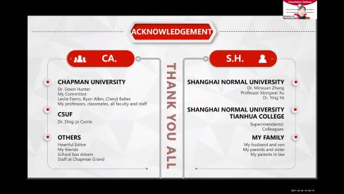 2021年2月25日早(美西时间2月24日下午),我校初等教育学院教师邢靖文,市教委强师工程第一批海外博士班学员之一,顺利完成博士论文答辩,成为市教委强师工程第一批海外博士项目首个答辩的博士生。
