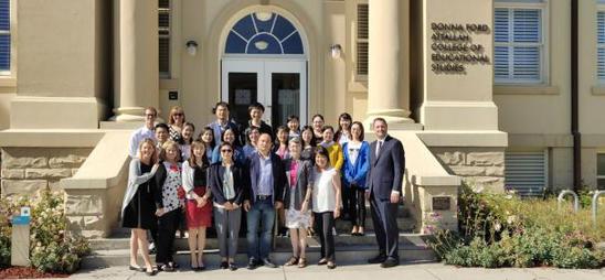 一直以来,市教委以及天华学院领导都十分支持和重视强师工程海外研修项目。2019年4月,市教委强师工程领导张民选、徐雄伟等先后飞抵加州查普曼大学慰问鼓舞博士班13位学员。2019年秋,强师工程又组织了隆重的回国欢迎仪式,让博士班学员充分感受到人文关怀的同时,也有力地激励和鞭策大家不忘初心,早日学成。2019年11月,天华学院领导热情接待了美国查普曼大学来访教师Ryan Allen博士夫妇,这在民办高校中也是独一无二的。