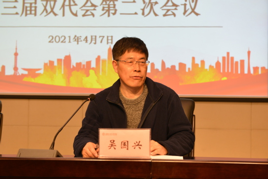 4月7日中午,学校第三届双代会第二次会议在明华楼报告厅隆重召开。79位代表出席会议,会议由工会常务副主席曹卫主持。