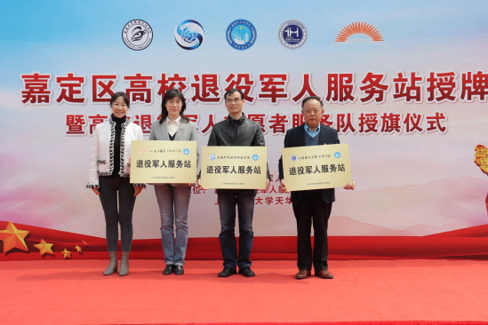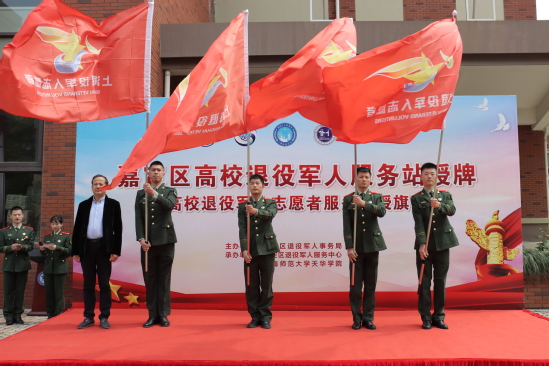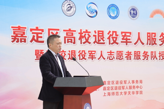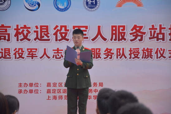 4月15日嘉定区高校退役军人服务站授牌暨高校退役军人志愿者服务队授旗仪式在我校昇华楼广场隆重举行,上海市退役军人服务中心副主任张琪,嘉定区退役军人事务局党组书记、局长张彩明,老版新葡萄8883国际官网校长叶才福、嘉定区退役军人事务局党组成员、副局长刘权,老版新葡萄8883国际官网党委副书记、武装部部长曹云林及嘉定区其他各高校分管领导、武装部部长、武装部干事和大学生退役军人志愿者代表出席本次活动。