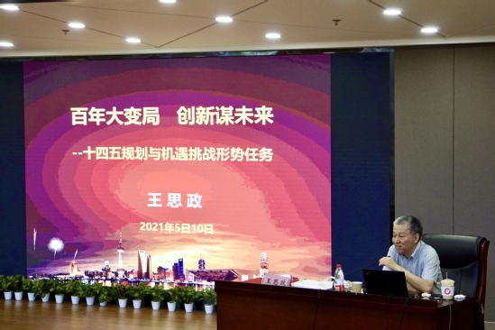 5月10日下午,学校党委举行中心组学习(扩大)报告会暨党史学习教育专题学习会,邀请上海市宏观经济学会会长、五中全会宣讲团成员王思政作《百年大变局创新谋未来——十四五规划与机遇挑战形势任务》专题报告。学校党委中心组成员、校务委员会成员、党总支(直属党支部)书记、全体基层党务干部、思政课教师、辅导员,以及部分师生代表、高级党校学员聆听了报告。报告会由党委书记陆建非主持。