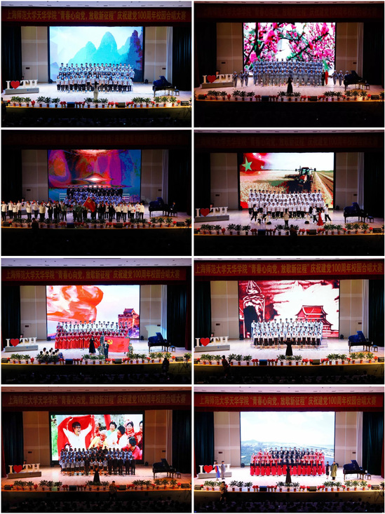 为迎接建党百年华诞,回顾党的光辉历程,讴歌党的丰功伟绩,充分表达天华学子爱国荣校的真挚情感,充分展示活力天华的青春风采,老版新葡萄8883国际官网校团委于2021年5月13日18:00在晖华楼大礼堂组织开展了“青春心向党·放歌新征程”庆祝中国共产党成立100周年校园合唱大赛。