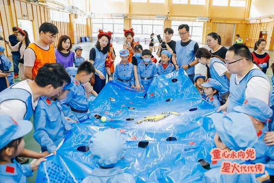 活动围绕“传承红色基因”思想,以闯关游戏、亲子互动等形式为载体,通过军号嘹亮、朱德的扁担、重走长征路、独轮车上的胜利、三军大阅兵五个环节来呈现。