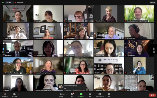 此次欢迎会,我校副校长龚春蕾通过Zoom平台进行欢迎会致辞,龚校长首先向韦伯州立大学的领导老师们表达了亲切的问候与感谢,并对即将就读硕士的14位师生表达了祝贺。龚校长回顾了过去我校与美国州立大学的校际合作,尤其在2020年疫情情况下,两校一起克服了种种困难,参与的师生即将顺利完成硕士项目。同时,龚校长谈到她和校长叶才福坚信,韦伯州立大学和天华学院将继续为硕士项目提供全力支持与帮助,期待疫情早日过去,大家能够早日线下见面交流。