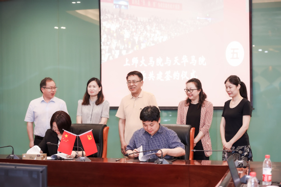 (马院院长周凯波与上师大马院院长张志丹签订合作协议)