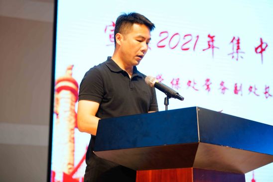 (学保处常务副处长、军训团副政委包静波宣读2021年集中军训组织架构安排)