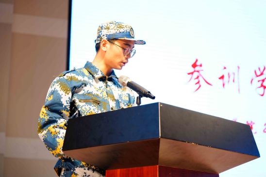 随后,来自商学院2020级财务管理1班何天成同学,作为学生代表进行发言。他表示军训是磨练意志品质最佳的途径,穿上迷彩服就应当勇于挑战、克服困难,实现自我超越。通过严格的军事训练提高政治觉悟,激发爱国热情,养成良好的学风、校风。何天成同学的发言,充分体现了全体参训学生对于军训的正确认识,展示了良好的精神面貌。