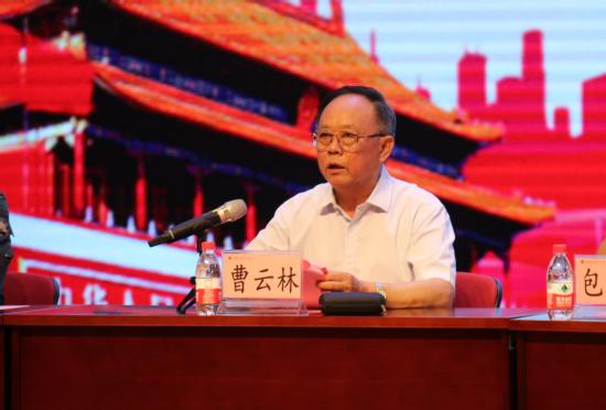 (校党委副书记、学保处处长、军训团副团长曹云林作动员讲话)