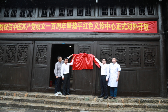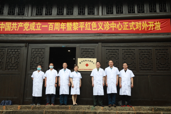 为庆祝中国共产党成立100周年,7月1日,贵州省黔东南州黎平县在原中央红军干部休养连驻地旧址设立黎平“红色义诊中心”,邀请退役的部队卫生专家和医生前来开展红色义诊活动,让当地群众在家门口就能享受到优质、便捷的诊疗服务,当地方群众中反响良好,受到人民网、黔东南微报等媒体报道。我校健康学院常务副院长徐晓峰教授参与活动策划,李爱民、张荣健教授应邀出席中心揭牌仪式并参加义诊。
