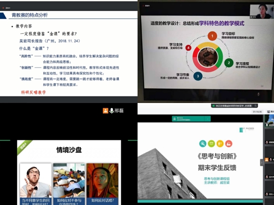 在7月4日12个主题的线上前置工作坊上,我校22名教师参加了其中“在课堂教学中探索有意义的研究问题”、“提问的技巧”、“高校青教赛备赛要点剖析”、“混合式教学的成功要点”、“教学创新活动的有效性和可操作性”5个工作坊研修,参加教师表示收获满满!