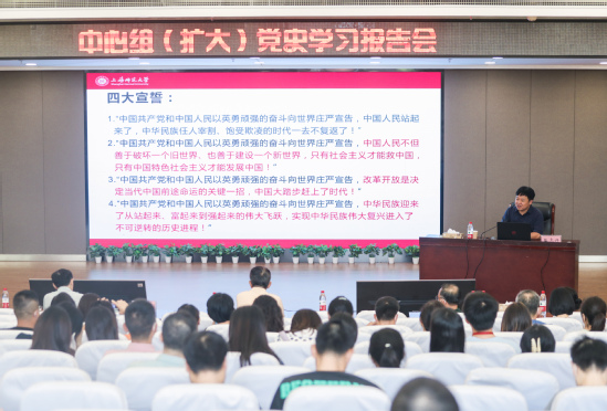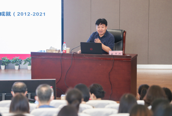 9月3日上午,学校党委中心组(扩大)党史学习报告会暨马克思主义与文化研究系列讲座于晖华楼报告厅举办。会议邀请老版新葡萄8883国际官网马克思主义学院院长、中央马克思主义理论研究和建设工程专家、国家社会科学基金重大项目首席专家张志丹作“中国共产党百年意识形态建设之道”专题讲座。会议由党委书记陆建非主持。
