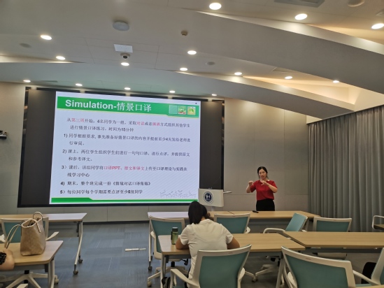9月2日上午,初等教育学院副院长胡雅楠以生动活泼的“活力课堂”带领大家进入了英语口译世界,在这别开生面的课堂中,胡雅楠老师向大家详细讲解了“活力课堂”所具有课堂新特征,将教学设计中的创新点进行了介绍。本次“活力课堂”展示,不仅英语专业的老师获益匪浅,其他专业的老师们也从中吸收到不少创设“活力课堂”的教学经验。