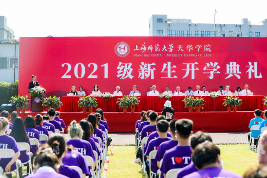 开学典礼最后,全体2021级新生在校团委书记杨央的带领下宣誓,以青春的名义,秉承“为做人而学习”的校训精神,铭记“诚信与责任”的教育理念,不忘信守诺言、不忘对人友善、不忘父母养育、不忘报效祖国,争做“专、通、雅”协调发展的天华人。