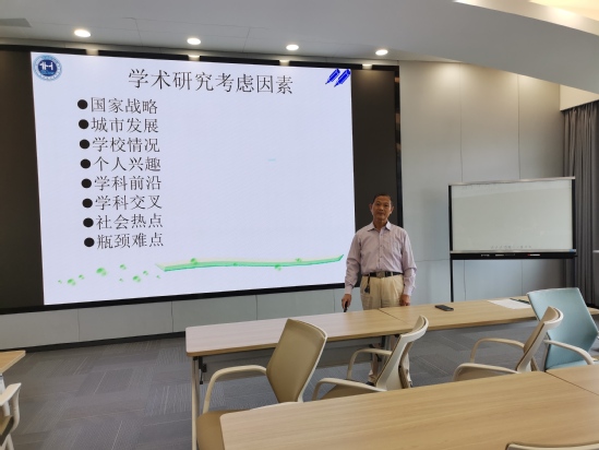 首先陈新斌与大家分享了学术研究考虑因素:国家战略、城市发展、学校情况、个人兴趣、学科前沿、学科交叉、社会热点、瓶颈难点。如何开展一项学术研究?学术研究需要广泛查阅资料、参加学术活动、与学者交流、刻苦钻研、挖掘本质、探讨规律、归纳总结等。博士学位论文要求具有前沿性、创新性、系统性、理论价值和应用价值。博士学位论文的题目来源主要是:导师指定,团队研究领域进一步广、高、深,个人兴趣、特长、积累,社会热点,发展瓶颈,偶然发现。