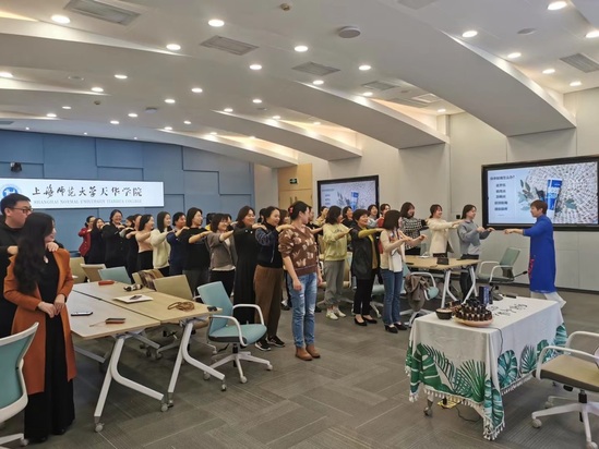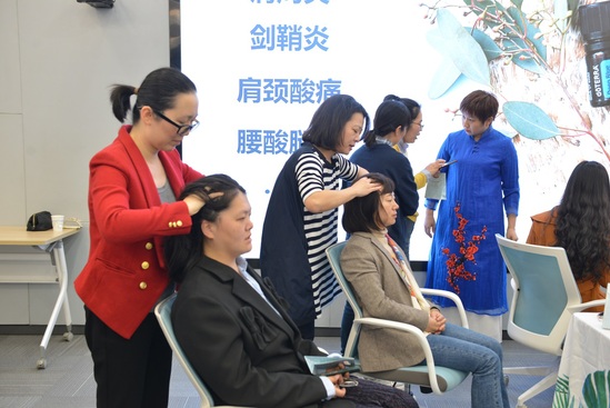 如今,头痛神经痛、肩颈酸痛、腰酸腿疼等症状几乎已成为困扰教师的普遍问题。宋老师通过两个互动体验游戏点燃现场活动气氛,她先是带领活动参与者挨个排成四条长龙,然后老师们运用精油为站在前面的老师按摩颈肩,让大家感受到轻松和愉悦。第二个互动环节中,老师们三两成群,彼此互相用精油按压头部和按摩肩颈,当精油慢慢渗透进入肌肤后,渐渐感受到身心状态发生改变,达到舒缓安神、自然调节的效果,纷纷表示受益良多。