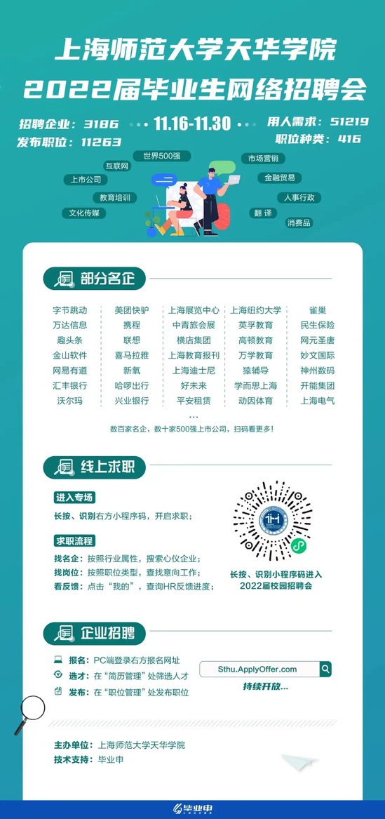 根据市政府和市教委对疫情防控的最新要求,大型聚集性活动非必要不举办,原定于11月16日举行的“老版新葡萄8883国际官网2022届毕业生秋季线下校园招聘会”,将改为线上进行,举办时间为:11月16日——11月30日,为期两周。