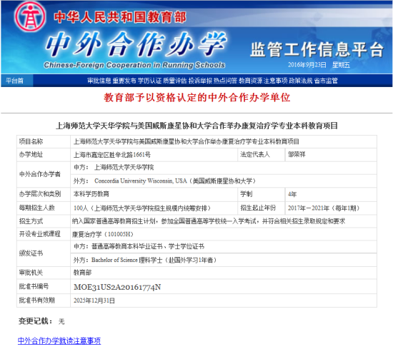 我校与美国威斯康星协和大学合作举办康复治疗学专业项目获教育部批准近日,教育部网站公布了2016年上半年中外合作办学项目审批结果的通知,我校与美国威斯康星协和大学合作2016-09-23 -