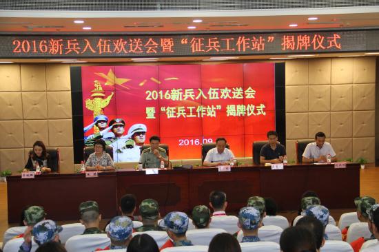 学校隆重举行新兵入伍欢送会暨征兵工作站揭牌仪式2016年9月20日下午13时,我校武装部在晖华楼小剧场隆重举行2016年新兵入伍欢送会暨征兵工作站2016-09-21 -