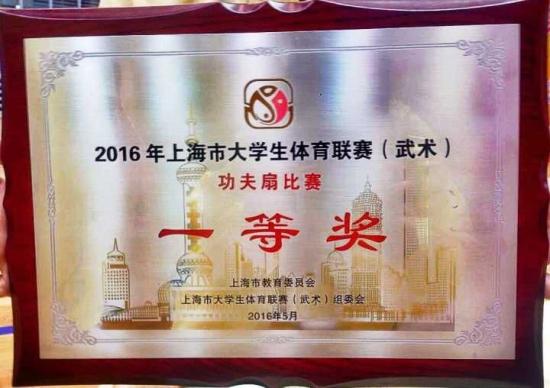 我校获上海市大学生体育联赛 功夫扇比赛一等奖2016年5月21日,上海市大学生体育联赛(武术)武术拳操、功夫扇比赛在上海中医药大学体育馆举行。我2016-05-24 -