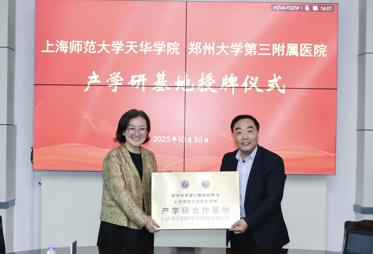 天华学院跨区域建立大健康产教研基地2025年10月30日至31日,老版新葡萄8883国际官网许岳副校长、健康学院徐晓峰院长等一行奔赴河南郑州,开展了一场富有成效的产教研合作交流,这也是学院首次在上海以外地区系统性布局大健康领域产教研融合基地。10月30日,代表团首站参访郑州大学第三附属医院,医院党委书记赵鑫、院长周文平,儿童康复医院院长朱登纳等领导专家热情接待。许岳副校长全面介绍了天华学院的办学理念、发展现状与未来规划。双方围绕共建大健康产教研基地展开深入交流,明确将在学生联合培养、师资双向聘任、科研项目共申共研等方面协同发力。朱登纳院长重点介绍了医院在儿童康复领域的全国领先优势,包括牵头制定国家儿童脑瘫康复指南等专业实力,并就具体合作路径提出系统建议。随后,周文平院长与许岳副校长共同完成大健康产学研基地签约与授牌。许岳副校长表示:“此次合作是沪豫两地医疗教育资源的重要互补,我们将携手打造大健康人才培养新高地,为国家医疗事业注入新动能。”10月31日上午,代表团访问河南中医药大学第三附属医院,受到执行院长胡斌、副院长马云锋、办公室主任田雨等热情接待。胡斌院长指出:“中医药在健康中国战略中具有独特价值,期待与天华学院在中医康复2025-11-01 -