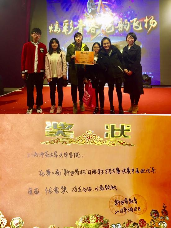 语言文化学院日语专业学生获第二届“新世界杯”日语学生才艺大赛决赛优秀奖2018年3月18日下午,第二届“新世界杯”日语学生才艺大赛决赛在上海上海圣拉维会馆成功举行。大赛由2018-03-20 -