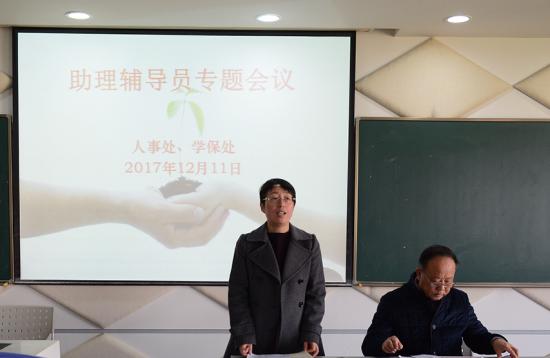 人事处、学保处召开助理辅导员工作专题会议2017年12月11日,人事处、学保处在明华楼五楼演播中心召开助理辅导员专题会议,校党委副书记、学保2017-12-18