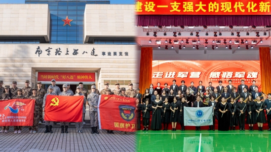 走进军营,感悟军魂——天华交响管乐团赴军营汇报演出1111MicrosoftInternetExplorer402DocumentNotSpecified7.8 磅Normal0为深入推进学习贯彻习近平新时代中国特色社会主义思想主题教育,厚植爱国情怀,坚定理想信念,增进军民同呼吸、共命运、心连心的深厚情感,唱响党带领人民军队进行革命、建设、奋进新时代的伟大赞歌,天华学子于11月17日走进南京路上好八连事迹展览馆。校党委书记助理、武装部部长卢建兵,学保处副处长、武装部副部长刘洪伟,学保处副处长、校团委书记杨央,校团委副书记王晓亮、沈捷,退役军人服务站指导老师徐鹏、国旗班指导老师蔡帅等一同参与本次活动。(图片一)天华交响管乐团以“强国有我”的姿态、争做时代新人的坚定决心,为全体官兵献上高雅艺术盛宴。乐团以《中国人民解放军进行曲》拉开演出序幕,深情演绎了《游击队之歌》《没有共产党就没有新中国》等经典作品,《咱们工人有力量》《灯火里的中国》《我和我的祖国》等当代作品,红色经典与中国现代交相辉映、韵味深长,中国旋律与交响乐中西合璧、美轮美奂,让官兵零距离感受高雅艺术的巨大魅力。演出现场气氛热烈,每每曲毕,雷鸣般的掌声此起彼伏。演出结束之际,气势2023-11-24 -