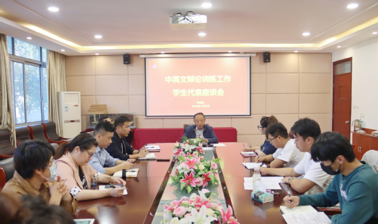 学保处召开中英文辩论训练工作学生座谈会1111MicrosoftInternetExplorer402DocumentNotSpecified7.8 磅Normal0为了更好地推进我校中英文辩论训练工作,进一步了解各学院年级教研组对实施方案的落实情况,2023年11月2日中午12:00,学保处在月华楼270召开学期中英文辩论训练工作大二年级教研组学生代表座谈会。校党委副书记、学保处处长曹云林,校党委书记助理、武装部部长卢建兵,学保处常务副处长包静波,副处长邵海波,副处长兼校团委书记杨央以及七名教研组学生代表参加。(图片一)会上,各学院学生代表围绕大二教研组训练工作的开展情况,训练组织进度以及存在的问题三方面进行交流发言。通过分享进一步了解了目前大二教研组的分层训练实施侧重点,训练内容和考核方式,体现了训练组织规范,训练成效良好,训练重点突出。(图片二)校党委副书记、学保处处长曹云林希望各教研组学生骨干要做好训练工作的宣传员、引导员和指导员,针对各学院学生素质特点和训练重难点统筹规划,在工作指导上要抓好破题训练,在训练程序上要重视对抗训练,在训练指导上突出一辩和四辩的能力,从而推进大二年级学生的整体训练层次和质量。(图片三)2023-11-06 -