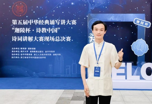 我校黄毅老师“活力课堂建设课程《唐宋名家诗词鉴赏》” 荣获第五届中华经典诵写讲大赛 “迦陵杯·诗教中国”诗词讲解大赛二等奖近日,由教育部、国家语言文字工作委员会主办,教育部语用司负责实施的第五届中华经典诵写讲大赛“迦陵杯·诗教中国”诗词讲解大赛获奖名单公布,我校教师黄毅作为上海赛区入围全国总决赛(大学教师组)的唯一选手,荣获大学教师组二等奖。(图1:黄毅老师参加全国总决赛)此次大赛今年三月正式启动。为迎接比赛,我校语委组织了校内选拔赛。经过激烈角逐,共15个作品获得不同等级的奖项,择优推荐了6个作品参加上海市的比赛,其中学生作品4个,教师作品2个。最终,黄毅老师通过层层选拔,入围全国总决赛,取得了与来自全国29个省市自治区的270名决赛选手同台竞技的机会。黄毅老师的参赛作品《浪淘沙令·帘外雨潺潺》节选自他所执教的《唐宋名家诗词鉴赏》通识课程。该课程是我校首批活力课堂建设优秀课程,并入选上海高校市级重点课程。本次获奖即得益于他多年来扎实的教学积累和精彩的现场发挥。(图2:总决赛开幕式宣传片)“迦陵杯·诗教中国”诗词讲解大赛以南开大学叶嘉莹教授之别号“迦陵”冠名,自2019年开始举办。大赛以提炼、展示、阐发、传讲中华诗词经典中蕴含的精神标识和思想精髓,传承中华文化基因为宗旨,是近年来唯一面向大中小学在职教师及2023-10-31