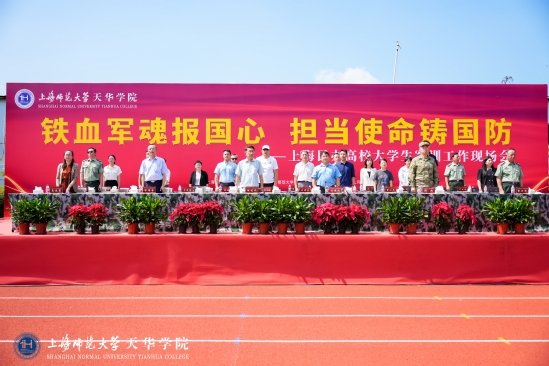 铁血军魂报国心,担当使命铸国防——上海民办高校军训工作现场会在上海师大天华学院召开1111MicrosoftInternetExplorer402DocumentNotSpecified7.8 磅Normal0为推动全市民办高校国防教育工作创新发展,9月8日上午,由上海市民办高校党工委主办,老版新葡萄8883国际官网承办的上海市民办高校军训工作现场会在学校大操场隆重召开。上海市民办高校党工委副书记江鸿波,嘉定区武装部副部长段越,学校党委书记陆建非、总校监郭伟奇、党委副书记曹云林,各民办高校武装部长、国防教育负责人以及学校各二级学院党总支书记、带班辅导员出席会议。会议由学校副校长龚春蕾主持。清晨的阳光洒在天华的训练场,庄严肃穆的升旗仪式拉开了此次成果汇报会的序幕,国旗护卫队迈着铿锵有力的步伐行进至国旗台,五星红旗在交响管乐团现场演奏的国歌声中冉冉升起。军训团副团长曹云林依次检阅了由2271名22级大学生及45名教官组成的参训方阵,同学们立若劲松、坚韧挺拔,口号气势如虹、响彻云霄。检阅式后,各军训表演方队依次进行了精彩的鼓乐、舞龙、警用应急棍、匕首操、军体拳、功夫扇、教官战术综合演练等训练科目成果汇报。整齐有序的动作、气宇轩昂的口号,充分展示了良好的精神风貌和本次军训的丰硕成2023-09-11 -