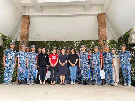 细雨绵绵迎军训 浓浓关爱振士气——各二级学院领导慰问参训师生在集中军训期间,各二级学院党、政领导纷纷来到训练场,向参训同学送上鼓励与祝福,同时向承训教官表达了诚挚的感谢和亲切地慰问。7月5日下午,学前教育学院开展了军训期间的暖心慰问活动。在活动伊始,承训教官陈伟刚向滕薇院长报告了本次军训应到、实道人数。随后滕薇院长发表讲话,她激励各位参训学员,军训时应当像军人看齐,从中吸取优秀的精神,锤炼良好的品质。强调军训的目的是为了让广大学生学习挫折教育,在挫折中吸取经验从而得到成长与锻炼。讲话的最后,滕薇院长对各位军训学员提出希望:“在建党百年之际,作为新时代的青年学生,应该明白自己身上的责任,履行自己的担当,在训练过程中勇于挑战自我、不断克服困难,为集体荣誉而奋斗。”图一(学前教育学院领导及正副辅导员与教官进行合影)7月5日下午,健康学院党、政领导对学院2020级参训学生及承训教官进行了慰问。慰问中,常务副院长徐晓峰指出:在军训过程中要严守相关纪律,明白军训虽苦,但能有效地增强体魄,提高身体素质。同时向各位同学强调军训的目的旨在强化作风,这对于促进日常学习、生活都起着的重要的作用,希望各位同学能够认真务实地完成本次军训,并在8号汇演中展现风采。徐院长的2021-07-08 -
