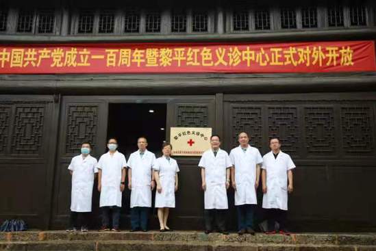 我校健康学院教授参加贵州黎平老区红色义诊活动为庆祝中国共产党成立100周年,7月1日,贵州省黔东南州黎平县在原中央红军干部休养连驻地旧址设立黎平“红色义诊中心”,邀请退役的部队卫生专家和医生前来开展红色义诊活动,让当地群众在家门口就能享受到优质、便捷的诊疗服务,当地方群众中反响良好,受到人民网、黔东南微报等媒体报道。我校健康学院常务副院长徐晓峰教授参与活动策划,李爱民、张荣健教授应邀出席中心揭牌仪式并参加义诊。(张荣健教授与当地政府领导共同为义诊中心揭牌)张荣健教授与当地政府领导共同为义诊中心揭牌,张荣健教授在发言中感慨了黔东南州顾问陈敏对黔东南州深厚的感情和为广大人民群众健康做实事、做长远的事的真心实意,希望“红色义诊中心”不断完善基础设施和组织管理方式,建立长期开展义务诊疗机制,逐渐添置必要的医疗检查和治疗设备,以军内外强大的医疗团队为技术保障支撑,在吸收国际先进技术与经验的同时深入研究符合黎平的全新健康保障模式,建立完整的独具特色的智能化和信息化为民健康的医学体系。在持续做好“红色义诊中心”的基础上,建立培养乡村健康管理实用医务人才的教育基地,从健康教育、慢病管理、疾病康复、心理治疗等方面为乡村医生提供将进一步学习的平台,2021-07-06