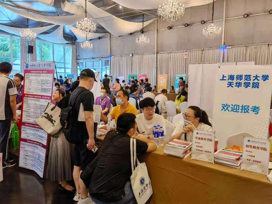 学校招生办积极组织开展2021年秋季招生咨询工作2021年6月26日周六上午9:00,我校参加“2021年上海市普通高校本科招生见面会”,招生办、学前教育学院、初等教育学院、艺术设计学院、商学院的多位老师参加,为考生和家长提供高考招生咨询服务。参加招生咨询的老师们,在咨询会上向考生和家长多方面介绍学校与专业的情况,围绕招生政策、专业特点、国际化教育、学校管理、就业质量等方面进行详细解读,最大程度满足了广大考生和家长高考咨询的要求。来到咨询现场的考生和家长积极提问,咨询集中的问题包括各专业招生计划人数、各专业分数线、艺术招生要求、专业就业前景、学生住宿条件等,对此我校老师一一进行解答。此次招生见面会,我校咨询老师详细介绍了我校的学科专业,包括重点学科情况和各专业发展状况等。参与咨询老师们从提前批招生志愿填报、投档原则、录取方式、转专业要求等详细讲解了我校今年的招生政策,为考生及家长填报志愿助力。学校分管领导朱国权副校长也亲临咨询现场,给参加招生咨询的老师鼓劲加油并亲自回答考生和家长的提问。为了增加今年上海考生对天华学院的了解,我校招生办还先后参加了多种的线上招生咨询活动。包括参加了6月22日至28日教育部“阳光高考” 信息平台组织的22021-07-05 -