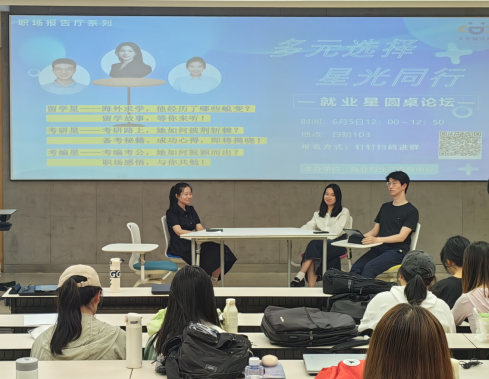 【职场报告厅系列】 我校就业星圆桌论坛圆满落幕 ——留学、考研、考编,多元选择助力学生未来规划在成长的道路上,留学、考研、考编还是就业,是我们每个人都必须面对的重要选择。为了帮助同学们更好地规划未来,我校就业与生涯指导中心于2025年6月5日中午12点在日阶103教室,特别邀请了几位经验丰富的学姐学长,分享他们在留学、考研、考编路上的宝贵经验。考编之路:把握机遇,精准出击 首先分享的是考编星秦睿远学姐。她详细分享了考编过程中学习和实践的双重需求,以及寻找就业方向的宝贵经验。她建议同学们密切关注老版新葡萄8883国际官网招聘会、长三角招聘会以及本校招聘会,通过与校领导面对面投递简历,能够显著提高成功率。此外,她还提到,关注目标单位的公众号,通过邮箱投递简历也是一种便捷且高效的方式。留学之旅:多元文化与成长机遇接着,留学星梁凯越学长分享了他的出国留学经历。他积极参与社团活动,结识了许多不同背景的朋友,并与教授、名校学长学姐深入交流。在留学期间,他不仅发现了中美在语言、学习、生活等多方面的差异,还分享了一些有趣的见闻,比如美国人将“long time no see”当作常见的问候语,这打破了我们对中式英语的固有认知。尽管美国的课业量相对较少,但内容并不轻松,他有更多时间去感受多元文化。梁凯越学长还2025-06-06 -