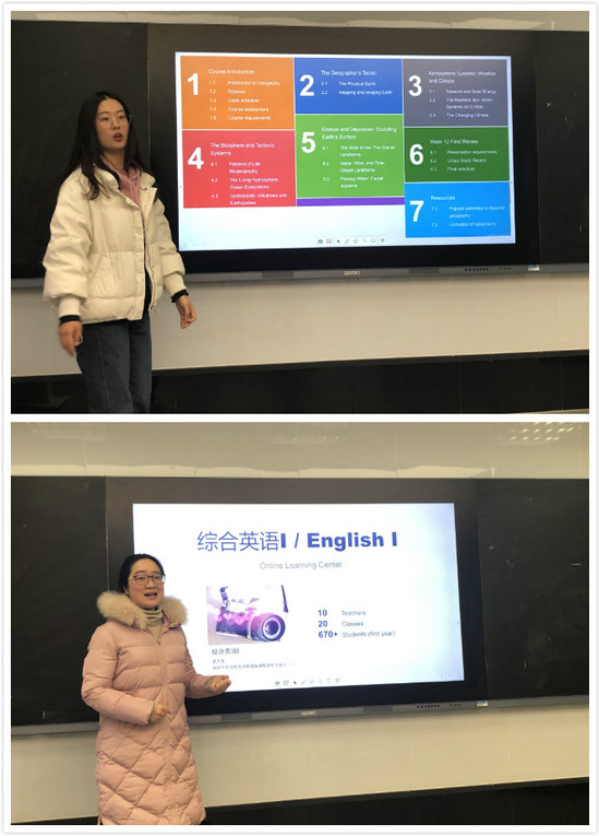 共建共享,合作双赢——国际通识教学部专题教研活动之在线课程建设交流为全面落实学校应对疫情提出的线上线下混合教学模式,国际通识教学部于学期初全力部署,要求全体教师做好面授课程的同时切实做好在线课程中心建设。针对外教看不懂中文的实际困难安排张灏对外教们进行在线课程建设集中培训和跟踪指导,并创建线上学习中心以便外教们随时学习,同时王颖超创建了教务管理线上课程中心对外教的各类文档进行规范管理并方便教师们及时更新和查阅。此外,国际部中方教师与外教结对,进行一对一指导和帮助。经过期初、期中、期末等多次抽查,20余门国际通识和语言类课程均已达到学校在线课程建设要求。为及时总结和分享在线课程建设经验并进一步增进中外教之间的沟通和交流,在今后更好地开展教学合作和在线课程建设,国际交流处和通识国际课程部于2021年1月12日在日162共同举行“专题教研活动之线上课程建设交流展示活动”。国际交流处处长胡珍及国际通识教学部20多名任课教师(其中外教6人)参与此次专题教研活动。首先,国际交流处副处长兼通识学院副院长梁杰提纲挈领地概述了本学期国际通识教学部整体教学和在线课程建设情况,并强调了在疫情及互联网新时代背景下,网络课程建设在日常教学中扮演着越来越重要的角色,线上线下混合2021-01-19 -