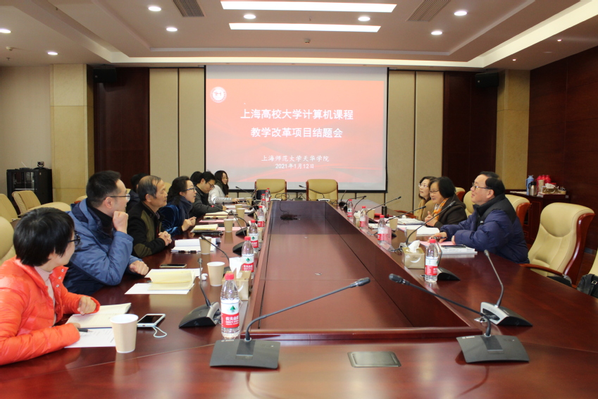 我校组织2019年上海高校大学计算机课程教学改革项目结题会2021年1月12日(周二)上午9:30,我校在同华楼一楼会议室举行了2019年上海高校大学计算机课程教学改革项目结题会。全国高校计算机基础教育研究会副会长龚沛曾、上海市高等学校信息技术水平考试委员会副主任委员高建华、上海市高等学校信息技术水平考试委员会委员朱敏、我校校长叶才福、副校长龚春雷、副校长吴国兴、副校长陈新斌、科研处常务副处长郑宁、教务处常务副处长徐振、人工智能学院院长凌旭峰和人工智能学院副院长樊江玲受邀出席会议。会议由副校长龚春雷主持。项目组成员时书剑代表项目负责人樊江玲进行现场汇报。(2019年上海高校大学计算机课程教学改革项目结题会现场)“上海高校大学计算机课程教学改革项目”是由各高校择优推荐,上海市教育委员会评选,限本市各本科高校申报的项目。旨在深入贯彻落实全国教育大会精神,加快建设一流本科教育,主动应对新时代和飞速发展的信息社会对人才培养的新需求,显著提升大学生信息素养、强化大学生计算思维以及培养大学生应用信息技术解决学科问题能力为目标,进一步推动大学计算机课程教学改革。2019年9月,根据上海市教育委员会发布的《上海市教育委员会关于公布2019年上海高校大学计算机2021-01-20 -