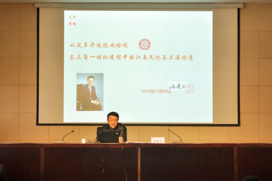 党委书记讲党课:从改革开放视域检阅长三角一体化进程中的江南文化与上海非遗12月9日下午,校党委书记陆建非以“从改革开放视域检阅长三角一体化进程中的江南文化与上海非遗”为题,在明华楼报告厅主讲“四史”专题党课,学校党政领导干部、教师及学生党员代表聆听了这堂党课。党课由党委组织部长周凯波主持。陆建非以“长江”作为开端,结合历史与亲身经历具体介绍了长三角一体化升级为国家战略的意义在于与多地区相互联动、同振共鸣,从经济总量、经济社会发展、城市、收入增幅四个方面指出,群落创新已经成为世界潮流,即通过交通将各地经济命脉相连,强调了知识产权和人才的重要性。回顾目前长三角发展短板、地方政府引导的合作事件,陆建非总结了长三角区域合作的五个特点:一是自上而下,建立了比较可行的“三级运作、统分结合”的区域协调合作机制;二是推进长三角区域一体化市场体系的建设;三是形成区域旅游合作新模式;四是建设多层多样的生态环境协同保护治理机制;五是探索建立区域公共治理合作机制,开展突发公共事件的城市合作应对的制度合作。联系上海周边各个城市的特色,陆建非提出,上海作为长三角的龙头城市,它的发展需要与周边城市主动对接,更好引领长江经济带发展,同时上海作为江南的组成部分,上海文化中不仅有江南文化,还2020-12-11
