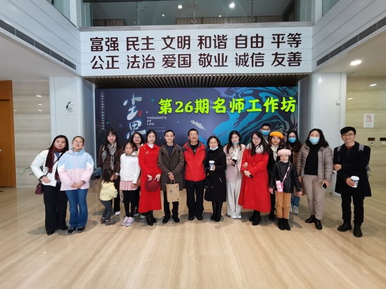 学校举行第26期名师工作坊: 《尘•思》新媒体展览12月5日上午,借助我校艺术设计学院的《尘•思》新媒体展览,第26期名师工作坊以实地参观的形式在普陀区文化馆开展,本期工作坊特别邀请策展人陈如华博士带领大家参观,并做精彩讲解。我校教师及其家属共20人积极参加了活动。(参观教师及家属合影)《尘•思》新媒体展览以艺术为依托,在各类空间里进行艺术的呈现,将传统艺术、新媒体技术与创新思维三者有机结合,赋予作品跨界融合的鲜明特色,实现文化创新,提升其吸引力,视觉效果震撼!首先,陈如华博士为大家讲解了新媒体展览的产生背景,《尘•思》属于“尘”系列作品之一,基于原创多媒体舞剧《沉香疏影》和《尘缘如梦》的核心思想而延伸,是对两部舞剧作品意义的再创造。展览以“尘”引思,既有创作者“向身方始出埃尘,造化功夫只在人”的志向,又有“心同野鹤与尘远,诗似冰壶见底清”的感悟。(陈如华博士做精彩讲解)接下来,陈如华博士为大家耐心讲解每一件展品的意义表达。本次展览共有十件作品,他们主要来自我校师生的创作,也有邀约作品。如我校学生的作品《尘•梦》,该作品的创作者陈开平也现身现场为大家做精心讲解,作品引入梦境的概念,使用线性结构塑造出不同的梦境,作品每天都将呈现出不同的2020-12-07