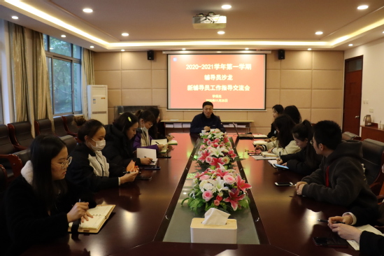 2020-2021学年第一学期辅导员沙龙系列活动之新辅导员工作指导交流会为进一步提升我校学生管理工作服务水平,聚焦学生成长需求,加强辅导员队伍建设,帮助新入职辅导员尽快适应岗位需求,实现角色转变,提升专业素质,了解工作理念。2020年11月25日12:00,学保处特组织新入职辅导员在月华楼270召开工作指导交流会,邀请学校法务审计处处长,原学保处常务副处长刘天翔主讲。(新辅导员工作指导交流会现场)刘天翔老师自身有着丰富的学生管理工作经验,在交流中结合个人经历所分享的感悟与体会,内容深刻,角度新颖、特色突出。在交流中分别从辅导员认知与体验、“三抓三坚持”特色育人理念内在逻辑、校训的深层内涵、辅导员职业发展之路等方面阐述了我校学生管理工作与辅导员的职业发展。他指出新辅导员在工作初期要全方面感知学生,在工作中善于思考和总结,在认同天华学生工作基础上建立个人工作特色,寻找出自身发展与天华建设的最大公约数。(刘天翔老师分享学生工作经验)刘老师对学生工作的深入思考和务实的工作作风给在场新辅导员带来新启发。在互动交流中,新辅导员纷纷围绕如何转换个人角色、学生特殊问题处理、个人职业发展前景等方面问题进行提问,通过解答进一步加深对辅导员工作的认识,开拓了工作思路,坚定了用心2020-11-27