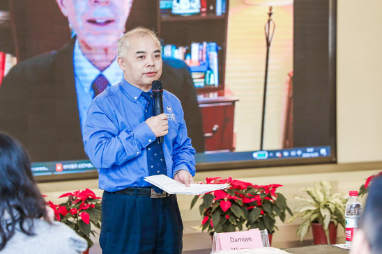 2020级康复治疗学(中外合作办学)美方开学典礼圆满举行2020年10月30日,2020级康复治疗学(中外合作办学)专业开学典礼在图书馆报告厅举行。美国威斯康星协和大学的校长Dr. Pat Ferry、分管国际事务助理副校长Dr. David Birner、康复专业系主任Dr. Steven Cope远程发来问候,特派分管国际项目主任Damian Wyman亲临现场与新生见面。我校校长叶才福、健康学院院长祝亚平,副院长刘敏、国际交流处处长胡珍、副处长夏智源、康复治疗专业(中外合作办学)专业主任徐欣,国际交流处教师、三双教师及辅导员代表出席了此次开学典礼。仪式由健康学院院长祝亚平主持。校长叶才福与美方分管国际事务助理副校长Dr. David Birner现场连线,共同为开学典礼致辞。这是双方第十八次见面,尽管受到疫情影响,这次开学典礼采用“线上+线下”的模式,但两校都极其重视相互的合作,提前为开学典礼做了充分准备。双方寄语2020级同学们能在崭新的大学环境中充分体验中美双方带来的优质教学资源及学生支持,践行“专、通、雅”的育人理念。(校长叶才福现场致辞)(协和大学分管国际事务助理副校长Dr. David Birner实时网络致辞)协和大学分管2020-11-04 -