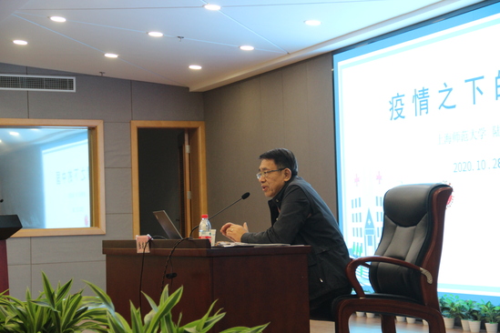 本学期“心灵之灯”系列讲座开讲,党委书记陆建非主讲“疫情下的中国”2020年10月28日下午16:15,本学期首期“心灵之灯”系列讲座之《疫情下的中国》在晖华楼报告厅由校党委书记陆建非教授正式开讲。校党委副书记、学保处处长曹云林,学保处助理以上干部,各二级学院党总支书记,全体正副辅导员以及300余名学生聆听了此次讲座。本次讲座由学保处常务副处长包静波主持。(图片一:陆建非书记在讲座中)陆建非教授是上海市党代表、徐汇区人民代表、中国跨文化交际研究会上海分会会长、中国陶行知研究协会副会长、上海师大陶行知研究中心主任、非物质文化遗产传承研究中心主任、市欧美同学会常务副会长。在疫情期间,陆教授多次在报刊杂志、出版社公众号以及学校公众号等平台撰文和录播微课,探究、评析和普及与防控疫情有关的热搜词汇的翻译方法,同时也积极呼吁及时确认对抗疫时期特殊人物的评价,并设立医护人员长期救助基金。此次讲座,陆书记回顾疫情下中国人民风雨同舟、众志成城的种种感人事迹,阐述了何为中国精神、中国力量、中国担当。战疫之下的生命至上、举国同心、舍生忘死、尊重科学、命运与共无一不印证了当今世界构建人类命运共同体是应对人类共同挑战、建设更加繁荣美好世界的人间正道。他认为中国特色社会主义制度2020-10-30