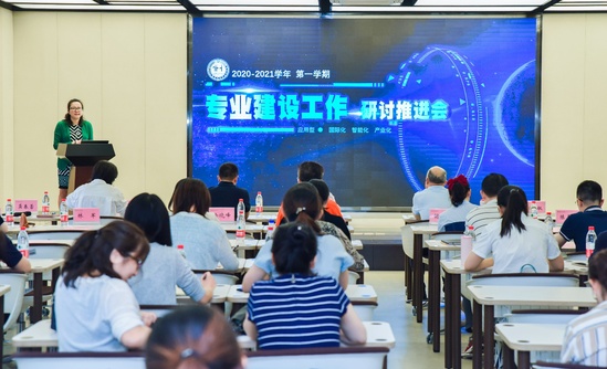 我校举办专业建设工作研讨推进会为贯彻落实董事会年度工作纲要“三化九点、八个着力”的安排部署,进一步提高专业建设能力,助力我校“专、通、雅”协调发展的应用型人才培养,2020年9月11日下午,我校教学部门在图书馆四楼报告厅,举行了专业建设工作研讨推进会。校长叶才福,副校长龚春蕾、陈新斌、党委副书记许岳,校监史文,各二级学院正副院长、院长助理、全体专业主任出席了本次研讨会,会议由龚春蕾副校长主持。(专业建设工作研讨推进会)以二级学院为单位,各位院长分别聚焦学前教育一流本科建设、人工智能赋能新工科和新商科发展、应用型本科和师范类专业实践教学环节特色凝练、双证融通、校企合作、产学联动等主题,交流了工作思路。会议首先由学前教育学院滕薇院长进行汇报交流。学前教育专业致力“师资队伍、市场需求、内涵创新、产教融合、专业认证”五个对标任务,以一流本科项目建设促专业内涵提升,在今后的专业建设中,深化教师培养,重点培养现有骨干教师队伍;实施教师分类管理,从教学、科研、产业化发展三个方向重点培养,实施幼儿园轮岗顶岗实践;加大力度推进精品课程、教学成果梳理和特色打造,为下一步申报教学成果奖做准备;利用人工智能技术,丰富学前教育课程与教学资源2020-09-14 -