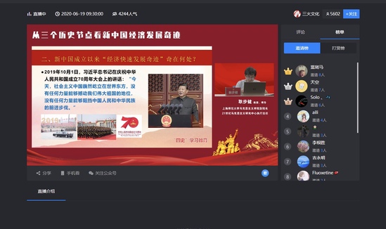 重温新中国奇迹 厚植新时代担当——上海民办高校党总支书记和党支部书记(委员)研修班开展“四史”学习教育之第二讲新中国史云培训6月19日,上海民办高校党总支书记和党支部书记(委员)研修班开展“四史”学习教育第二次线上学习,邀请老版新葡萄8883国际官网马克思主义学院副院长耿步健教授讲述“新中国史”,作“从三个历史节点看中国经济发展奇迹”精彩报告,老版新葡萄8883国际官网继续教育学院党总支书记、院长俞伟东主持,研修班学员以及民办高校干部、党员、教师、入党积极分子、青年学生5588人实时在线观看视频直播,1008人参与线上互动并为讲座点赞。耿步健从“新中国成立以来经济的沧桑巨变令世人震撼”“新中国成立以来‘经济快速发展奇迹’奇在何处?”“新中国成立以来‘经济快速发展奇迹’背后的逻辑”,讲述了新中国所取得的经济发展奇迹。他从1949年、1978年和2019年三个重要的时间节点,总结新中国以来经济发展的巨大变化。他认为,新中国70年巨变的震撼之处在于:中国仅用了几十年的时间,就走完了西方国家几百年走过的路;中国有14亿人口,比此前崛起的大国人口总和还要多。耿步健教授系统总结经济快速发展六大奇迹,分别是科技进步成果举世瞩目、完备的产业体系和国民经济体系、全世界上领先的基础设施体系、现代金融体系、区域协调发展和对外开放成就。耿步健解读我们党领导全2020-06-22