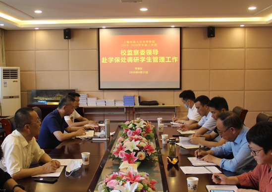 校监察委领导赴学保处调研学生管理工作自2020年新冠疫情爆发以来,学校监察委高度重视学生管理工作,对一线的学生管理工作者表示深深的牵挂。总校监郭伟奇于6月23日赴学保处指导调研本学期学生工作,了解学生管理部门校园疫情防控工作的落实情况,听取各二级学院的意见反馈。上午9:00在月华楼270会议室,总校监郭伟奇,校党委副书记、学保处处长曹云林,学保处常务副处长包静波,学保处副处长刘洪伟、邵海波及各二级学院党总支书记出席本次座谈会。会上,校党委副书记、学保处处长曹云林围绕疫情下校园防控、毕业工作、网上教学协助、校园安全稳定、辅导员队伍建设及征兵工作六大板块进行汇报。总体感到学期工作正常有序,疫情防控“四个到位”,校园安全稳定。疫情防控是学生工作的重中之重,学保处结合市教委要求,积极部署,多措并举,落实防控措施,在校防疫领导小组的领导下,一手抓校园稳定;一手抓校园疫情防控;一手抓毕业生返校,一手抓非毕业生健康排查,稳打稳扎的落实疫情防控工作。郭伟奇总校监在听取汇报的同时,详细了解相关工作的具体情况,结合了疫情防控的实际与难点与大家探讨研究,提出了中肯的指导性建议。经过此次调研,郭伟奇总校监对于学保处在特殊时期的疫情防控工作表示充2020-06-24 -