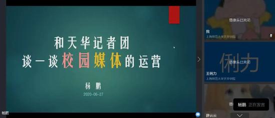 党委宣传部举办“校园媒体运营”线上培训第二讲为做好校园媒体的运营及管理,提高校内宣传干事及学生团队的新媒体运营技能,6月27日19:00,学校党委宣传部特邀复旦大学新闻学院副教授杨鹏为校内宣传干事及学生团队进行线上授课。我校党委宣传部、各党总支宣传干事及大学生记者团全体成员参加。杨鹏从自己创办与运营媒体的经历出发,结合他在准备讲座过程中的思考,对“如何提升读者关注度”这一问题做出详细阐释。杨鹏指出校园媒体的运营不但要关注信息的接收者、推送内容、推送时间、传播渠道、信息形态与传播效果,还要关注读者的需求以及推送对读者的意义。随后,杨鹏提出改变校园媒体的阅读环境要从理解对象环境、用好技术渠道、针对读者的阅读模式三方面来改变,同时通过列举关键词对校园媒体知识进行相关拓展。他表示在媒体创作过程中要细观察、勤思考,同时对新媒体创作要深入到国家社会层面。紧接着,杨鹏与宣传干事及大学生记者团进行深入交流,对大家提出的困惑进行专业解答。他针对“如何在写新闻稿时生动但不失固有模板”、“推送内容如何能与同学产生共鸣”等问题进行了详细说明。本次讲座干货满满、生动有趣,进一步激发了宣传干事及大学生记者团成员对新媒体工作的热情,不仅给大家提供了与专业老师2020-06-29 -