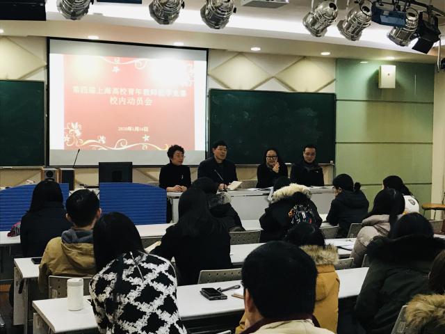 我校召开2020年第四届上海高校青年教师教学竞赛动员会2020年1月16日,学校人事处、教务处在明华楼演播中心召开了2020年第四届上海高校青年教师教学竞赛动员会。副校长龚春蕾、副校长兼人事处处长吴国兴、人事处常务副处长曹卫、教务处常务副处长徐振出席了会议,会议由副校长龚春蕾主持。龚春蕾指出,本次比赛由人事处和教务处联合组成教学比赛工作小组,并对参赛教师提出四点16字要求:1.吃透标准,2.吸纳借鉴,3.整合提升,4.特点鲜明。希望各位参赛教师在寒假期间做好功课,下学期开学后将模拟正式比赛流程及安排,举行几轮校内选拔赛,最终选拔出参加第四届上海高校青年教师教2020-01-17 -