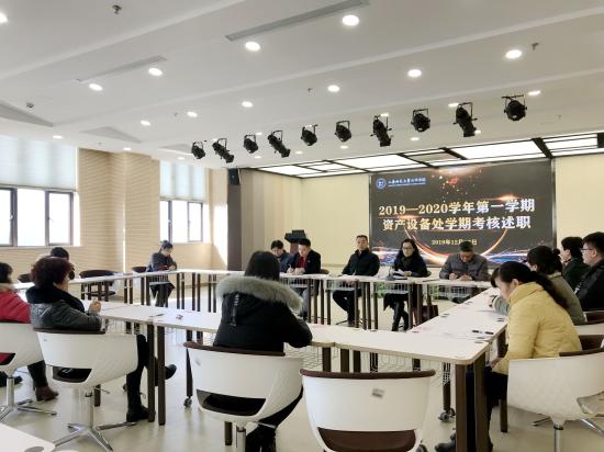 我校资产设备条线组织学期考核述职2019年12月27日和12月30日,资产设备处组织开展学期考核述职,资产设备处处长朱清,副处长董海霞、周建文及资产设备处副处级干部全程参与并组织了考核。考核按照图书馆、车队、原资产设备处三个条块分别组织实施。(图书馆考核述职)个人述职前董海霞副处长对学期考核工作进行了详细的解读,资产设备处严格按照学校人事处下发的考核要求执行,12月30日前完成个人网上自评,1月3日前完成部门考核并分别排序上报人事处。在学校制定的考核实施方案基础上,资产设备处制定了《资产设备处员工考核实施细则》,考核总评成绩采用百分制计2019-12-31 -
