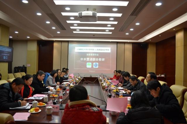 商学院财务管理专业与上海商业会计学校中本贯通联合教学研讨会在我校举行2019年12月27日下午13点,老版新葡萄8883国际官网与上海商业会计学校中本贯通财务管理专业联合教学研讨会在天华学院同华楼一楼会议室召开。天华学院副校长龚春蕾、商学院院长程葆青、招生办主任顾宝君等相关领导及专业教师参与此次会议。上海商业会计学校校长陈文珊、教务科长张在宏、招就办主任李元、基础部主任胡岩、专业部主任魏强、专业带头人张琦及四名专业教师受邀参与此次会议。会议由天华学院商学院院长程葆青主持。(中本贯通联合教学研讨会现场)首先,由龚春蕾副校长致辞,对上海商业会计学校一行的到来表示热烈的欢迎,并以财务2019-12-31 -