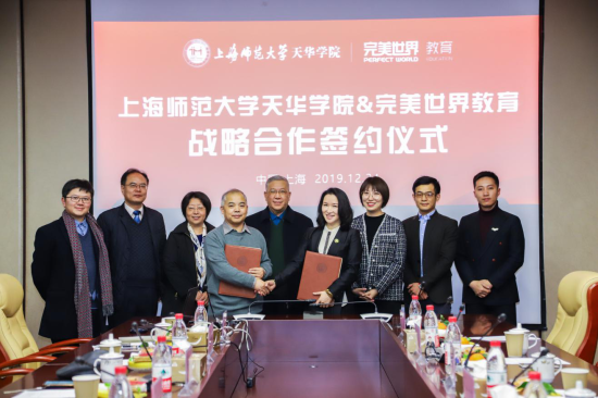 我校与完美世界教育签署战略合作协议2019年12月24日上午,我校与完美世界教育科技有限公司战略合作签约仪式在我校同华楼会议中心隆重举行。董事长邹荣祥、校长叶才福、副总校监李雅君、副校长王友根,以及艺术设计学院常务副院长徐子卿参加了签约仪式。完美世界集团高级副总裁兼官方发言人、完美世界教育董事长王雨蕴,常务副总裁郭擂、完美世界IP管理与运营部总监张瑞,以及华东大区经理郝连春前来参加此次签约仪式。(我校领导与完美世界教育相关负责人合影)签约仪式上,我校董事长邹荣祥和完美世界教育董事长王雨蕴分别致辞。双方均就此次战略合作项目规划情况、发展前景2019-12-27